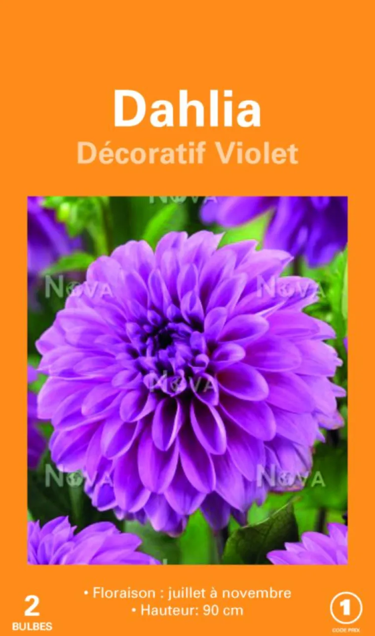 | Conseils d’entretien | Choisissez un emplacement ensoleillé dans un sol riche et bien drainé. Les bulbes de dahlias se plantent après les fortes gelées. Dans un sol ameubli, placez un tuteur au centre d’une cuvette de Ø 40 cm puis le bulbe et recouvrez-le de 5 cm de terre. Dès que la végétation s’étoffe, arrosez de préférence au pied sans mouiller le feuillage, le soir pour éviter l’évaporation. Dès le début de l’été, surveillez l’apparition de ravageurs. Arrosez copieusement à la plantation puis régulièrement pendant la végétation avec une solution d’engrais, sans mouiller le feuillage. A l’apparition des jeunes plantules, protégez des limaces et escargots. Pour des plantes plus trapues et florifères, pincez-les en début de végétation : coupez l’extrémité de la tige dès l’apparition de la quatrième feuille. Éliminez les fleurs fanées pour prolonger la floraison. Dès les premières gelées, arrachez les tubercules et remplacez-les par des bulbes à floraison printanière : tulipes, narcisses, crocus… Pailler votre sol pour le protéger et limiter le développement d’adventices. La date de floraison et hauteur varient selon le sol, l’exposition et le climat.