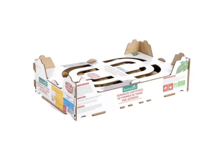 | Conseils d’entretien | A conserver au dessus de 1 C°. 1 – La préparation du sol La pomme de terre aime un sol riche, humide et bien aéré : en automne travailler le sol pour l’ameublir et apporter du fumier ou du compost. 2 – La plantation Planter dans un sol suffisamment réchauffé (10°c) dans des sillons de 5 cm de profondeur avec les distances adaptées aux variétés : Précoces : 65 cm entre les rangs, 35 cm entre les plants. Tardives : 70 cm entre les rangs, 40 cm entre les plants. 3 – La culture Il est important de butter les pommes de terre en début de végétation et continuer régulièrement jusqu’à ce que la plante ait une hauteur de 15 à 20 cm. La pomme de terre a besoin d’un climat équilibré . penser à l’arroser régulièrement, sans excès cependant. 4 – La récolte & la conservation Attendre la période de maturité complète de la pomme de terre. Etaler les tubercules dans un lieu bien aéré et sombre à l’abri du gel. Consommer les pommes de terre dans la période de conservation recommandée pour bénéficier de toutes les qualités gustatives de la variété.