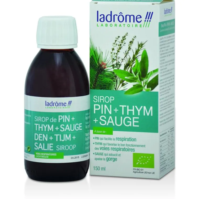 | Composition | Sirop de blé* (garanti sans gluten), miel*, extraits hydro-alcooliques glycérinés de sauge officinale* (Salvia officinalis) et de pin sylvestre* (Pinus sylvestris),sirop d’agave*, huiles essentielles de thym à thujanol* (Thymus vulgaris ct thujanol) et de pin sylvestre* (Pinus sylvestris). (*) Ingrédients issus de l’Agriculture Biologique.