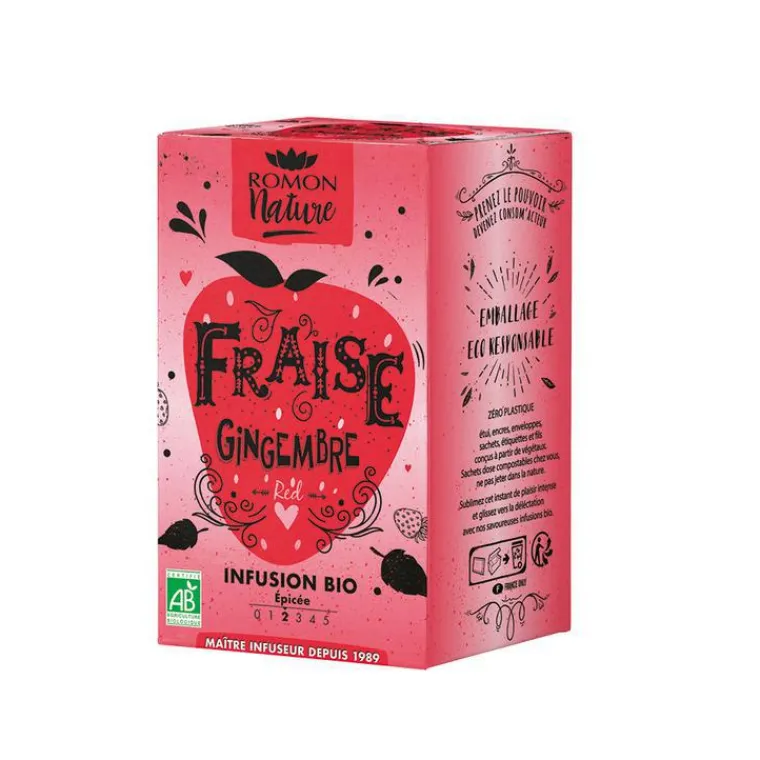 | Composition | POMME BIO, GINGEMBRE BIO, HIBISCUS BIO, CYNORRODHON BIO, MÛRE BIO, AROME NATUREL DE FRAISE BIO, POIVRE NOIR BIO, FRAISE BIO