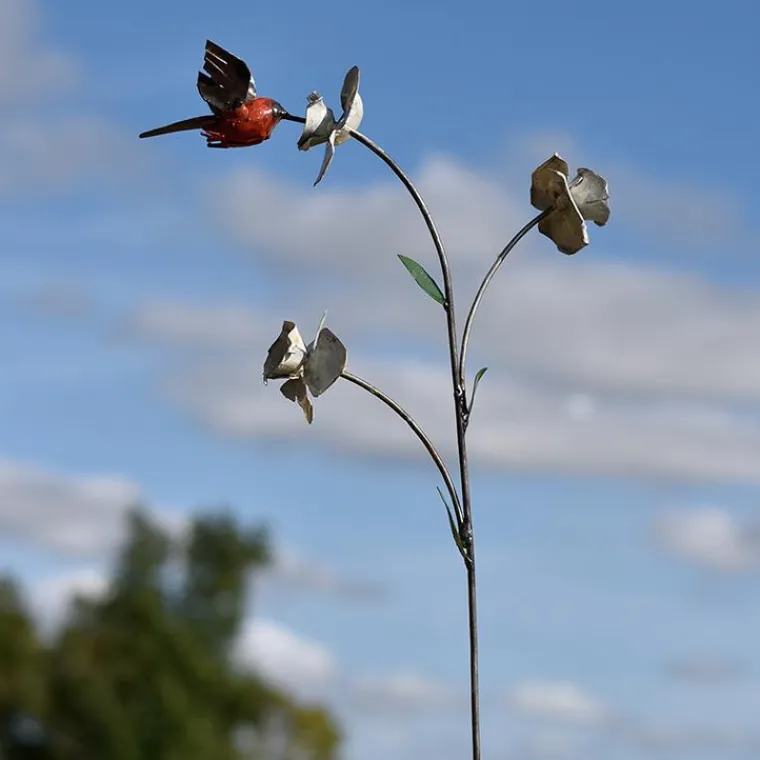 New CHOUETTE AND CO Tuteur métal 3 fleurs et 1 colibri couleur