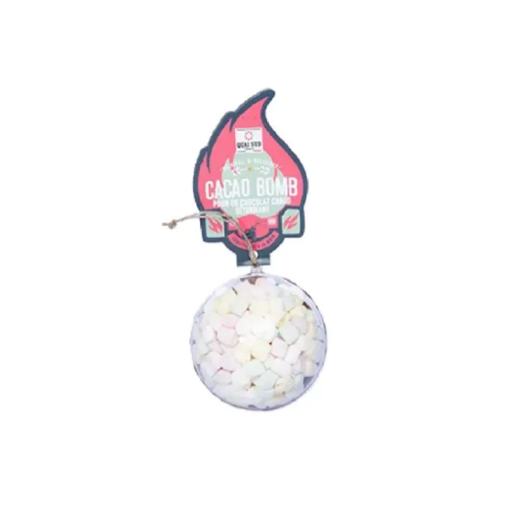 | Conseils d’entretien | Verser un litre de lait dans une casserole, faire chauffer à feu très doux. Verser lentement le contenu de la boule dans la casserole et mélanger doucement à l’aide d’un fouet idéalement ou d’une cuillère en bois jusqu’à obtention d’une préparation lisse et homogène. Servez-vous, régalez-vous ! Idée déco gourmande : Garder une partie des mini marsmallows pour les saupoudrer sur de la crème chantilly.