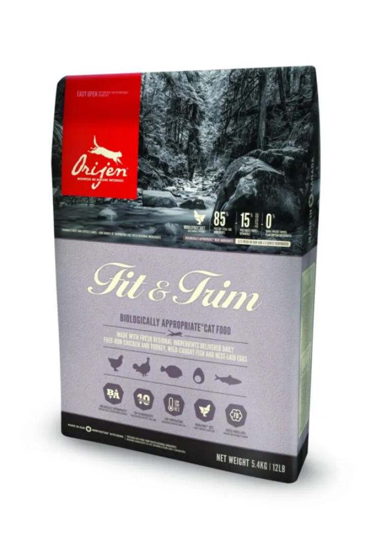 | Composition | Cette nourriture contient moins de matières grasses et de glucides et bénéficie d’un mélange unique de fibres de citrouilles, de pommes et de courges. ORIJEN Fit & Trim déborde de protéines animales nutritives provenant de volaille élevée en liberté, de poissons sauvages et d’oeufs pondus au nid, tous livrés FRAIS ou CRUS dans des proportions WholePrey TM .Viande de poulet fraîche (14%), oeufs entiers frais (6%), hareng entier frais (6%), viande de dinde fraîche (6%), foie de poulet frais (6%), plie entière fraiche (4%), maquereau entier frais (4%), merlu du pacifique entier frais (4%), foie de dinde frais (4%), coeur de poulet frais (4%), poulet (déshydraté, 4%), dinde (déshydraté, 4%), maquereau entier (déshydraté, 4%), sardines entières (déshydratées, 4%), hareng entier (déshydraté, 4%), goberge de l’Alaska (déshydraté, 4%), fibre de lentilles, lentilles rouges, lentilles vertes, pois verts, pois chiches, pois jaunes, haricots pinto, haricots ronds blancs, cartilage de poulet (déshydraté, 1%), coeur de dinde frais (1%), merlan bleu entier (déshydraté, 1%), gras de poulet (0,5%), fibre de pomme, algues séchées (source d’ADH et d’AEP), citrouille (déshydraté), courge musquée (déshydraté), carottes (déshydratées), foie de poulet (lyophilisé), foie de dinde (lyophilisé), citrouille entière fraîche, courge musquée entière fraîche, courgettes entières fraîches, panais entiers frais, carottes fraîches, pommes red delicious entières fraîches, poires bartlett entières fraîches, chou vert frisé frais, épinards frais, feuilles de betteraves fraîches, feuilles de navet, varech brun, canneberges entières, bleuets entiers (myrtilles), baies de saskatoon entières, racine de chicorée, curcuma, chardon marie, racine de bardane, lavande, racine de guimauve, fruits de l’églantier. ADDITIFS (par kg): Additifs nutritionnels : Chélate de zinc : 100 mg, chélate de cuivre 11 mg, chlorure de choline 1200 mg. Additifs zootechniques : Enterococcus faecium NCIMB10415: 600×10ý6 CFU.Composition : Protéines 44 % Matières grasses 15 % Cendres brutes 10 % Fibres brutes 6 % Humidité 10 % Calcium / Phosphore 1,4 % / 1,1 % Magnésium (max.) 0,1 % Taurine (min.) 0,2 % Omega-6 / Omega-3 2,4 % / 1 % ADH / AEP 0,3 % / 0,2 % L-Carnitine 33 mg/kg Répartition des calories : Énergie métabolisable : 3710 kcal/kg (445 kcal pour une tasse de 250 mL/130 g). Répartition des calories pour maintenir une excellente forme: 47% de protéines, 16% de fruits et légumes et 36% de matières grasses.