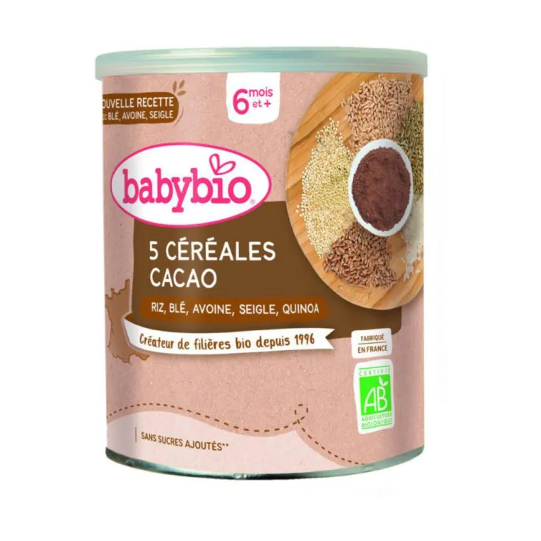 | Composition | Farine de riz* 88%, farine de quinoa rouge* 8,5%, arôme naturel de cacao*, cacao maigre en poudre* 0,9%, extrait de vanille Bourbon*, thiamine (vitamine B1). * Issus de l’agriculture biologique