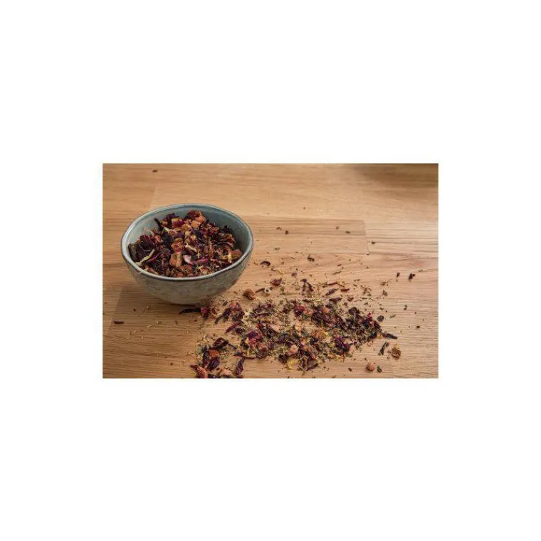 | Composition | POMME BIO, HIBISCUS BIO, CRANBERRY BIO , CYNORRODHON BIO, FRAISE MORCEAU BIO, AROME NATUREL DE FRAISE BIO, STEVIA BIO, FLEUR DE TOURNESOL BIO, FLEUR DE SUREAU BIO
