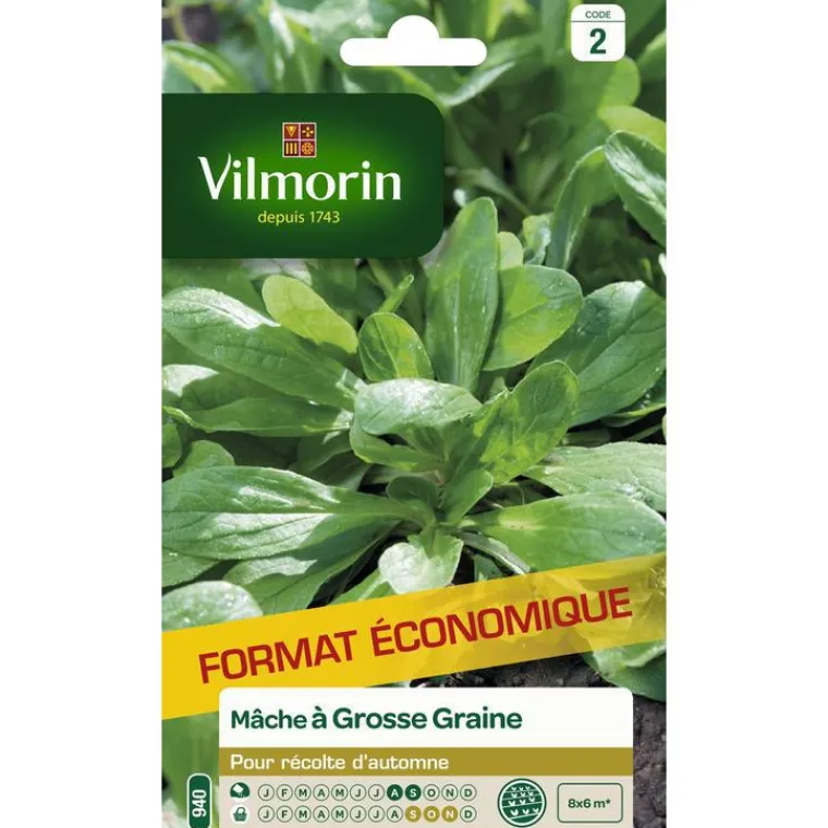 | Conseils d’entretien | Protéger éventuellement vos mâches avant les premières gelées pour prolonger vos récoltes. Récolter de septembre à novembre. Régulier