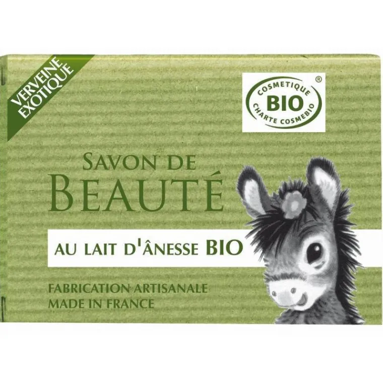 | Composition | Ingrédients : Sodium palmate?, Sodium cocoate?, Aqua, Glycerin?, Parfum, Coco-glucoside, Donkey milk?, Sodium chloride, Tetrasodium Glutamate Diacetate, Citral?, Citronellol?, Geraniol?, Limonene?, Linalool?. Composition : savon fabriqué à partir d’huiles végétales Bio, lait d’ânesse Bio (équivalent 10 % frais), parfum 100 % huile essentielle pure et naturelle, agent moussant dérivé du sucre, agent séquestrant d’origine naturelle.