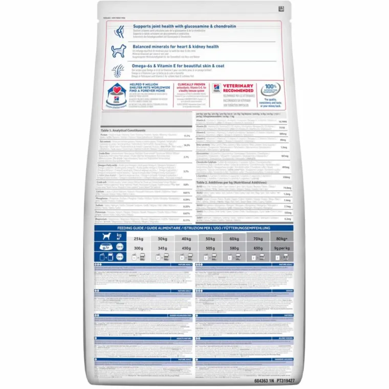 | Composition | au Poulet : Maïs, farine de son de pois, protéines déshydratées de poulet (8%) et dinde (total volaille 13%), farine de gluten de maïs, hydrolysat, pulpe de betterave déshydratée, graisse animale, cellulose, huile de soja, minéraux, graines de lin, L-carnitine, vitamines, oligo-éléments , cartilage de porc (source de chondroïtine sulfate), hydrolysat de coquille de crustacé (source de glucosamine) et bêta-carotene. Avec un antioxydant naturel (mélange de tocophérols).