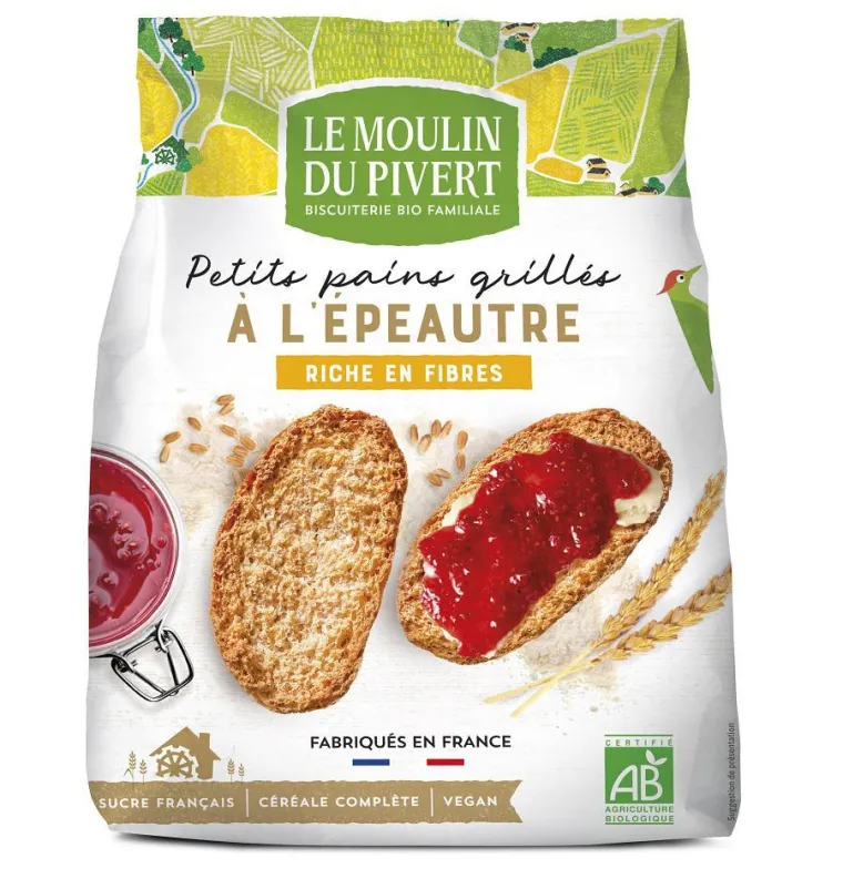 | Composition | Farine de complète de grand EPEAUTRE* (97%), sucre de canne*, huile de tournesol*, levure, sel, GLUTEN DE BLE*.