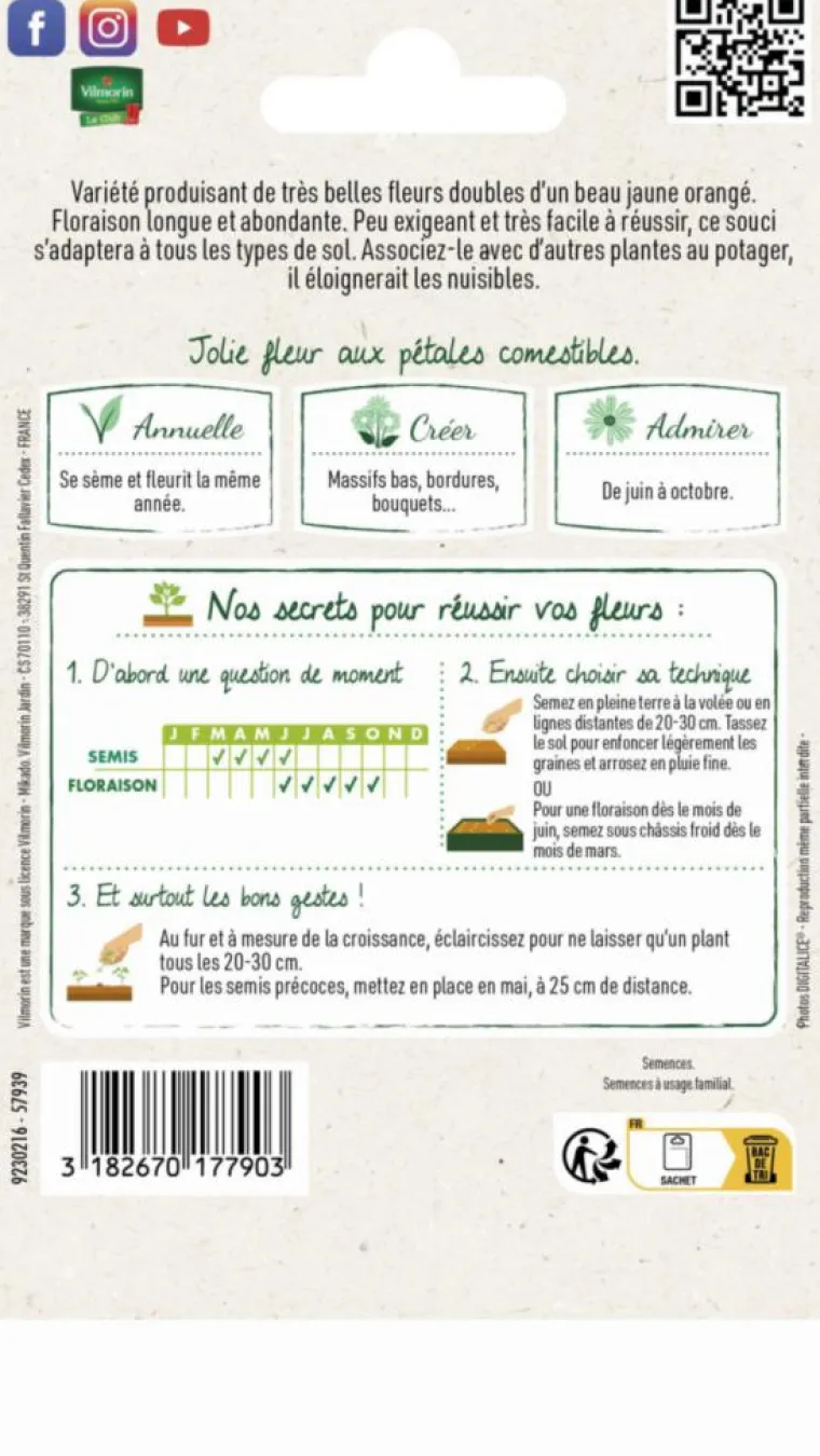 | Saisonnalité des semis | MARS AVRIL MAI JUIN