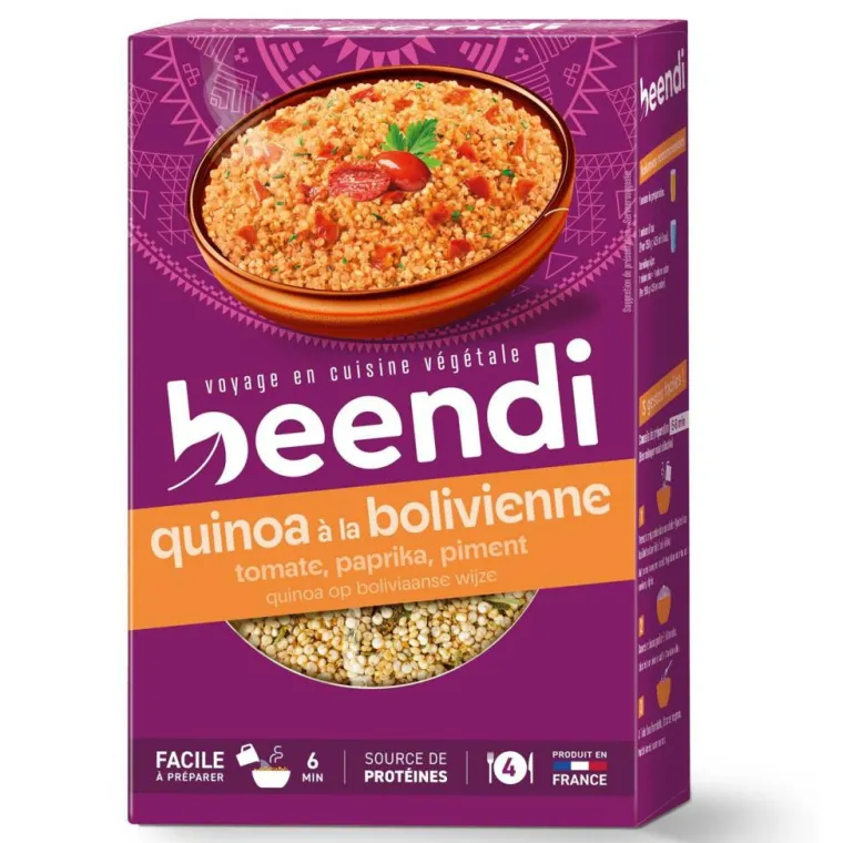 | Composition | Quinoa* précuit (86%), tomate* (poudre* et morceaux*) (6,8%), sel de Guérande, graines de SESAME*, poivron*, paprika* (1%), oignon*, thym*, piment* (0,14%), .origan*, coriandre*. *Ingrédients issus de l’agriculture biologique