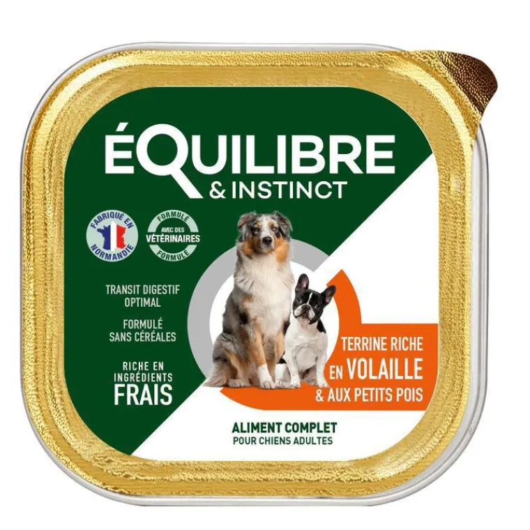 | Composition | Terrine d’ingrédients frais, riche en volaille et aux petits pois : Volaille (14% min, ingrédients frais 14% min), porc (ingrédients frais 13%), boeuf (ingrédients frais 4%), légumes (petits pois 4%), gluten de blé, farine de blé, minéraux, dextrose. Additifs Technologique: Gomme de cassia 5078 mg, Additifs Nutritionnels : Vitamine D3 152 UI, Vitamine E 87 mg, Biotine 0.016 mg, Vitamine B1 19.57 mg, Iode (E2) 0.18 mg, Manganèse (E5) 1.05 mg, Cuivre (E4) 0.08 mg, Zinc (E6) 13.89 mg.