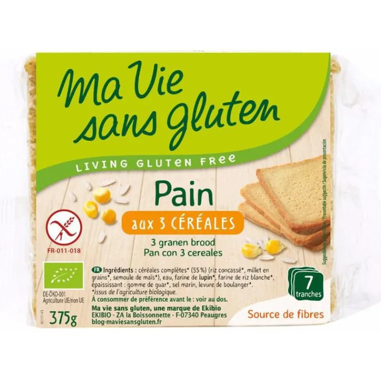 | Conseils d’entretien | tranches de pain à détacher de préférence avec un couteau, se consomment telles quelles ou bien légèrement toastées. La présence de 3 céréales offre atout nutritionnel et saveur à ce pain. Le double sachet lui garantit le maximum de fraîcheur.?
