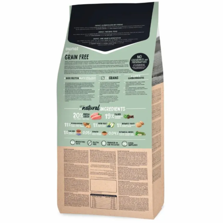 | Composition | COMPOSITION : Viande déshydratée (34%), poulet frais* (min. 20% avant l’extrusion), petits pois entiers*, graisse de volaille (préservée avec des antioxydants naturels), racines de manioc*, pomme de terre déshydratée*, gousse de caroube*, protéines de poulet hydrolysées, poisson déshydraté, levure de bière*, pulpe de betterave, pomme fraîche* (1%), graines de lin*, algues marines déshydratées*, sel gemme*, huile de poisson (préservée avec des antioxydants naturels), fructo-oligosaccharides et mannane-oligosaccharides, luzerne déshydratée*, glucosamine, chondroïtine, yucca schidigera, airelles*, thym*, fleur de camomille*, fenouil*, échinacées*, thé vert*. *Ingrédients naturels. ADDITIFS/KG : Additifs nutritionnels : Vitamine A 22 000 UI, Vitamine D3 1 500 UI, Vitamine E 350 UI, Vitamine C 100 mg, Taurine 1 100 mg, L-Carnitine 200 mg, Cuivre (sulfate de cuivre pentahydraté) 5 mg, Cuivre (chélate de cuivre d’acides aminés hydraté) 5 mg, Manganèse (oxyde de manganèse) 50 mg, Zinc (oxyde de zinc) 100 mg, Fer (sulfate de fer, monohydraté) 50 mg, Zinc (chélate de zinc d’acides aminés hydraté) 10 mg, Iode (iodure de potassium) 4 mg, Sélénium (sélénite de sodium) 0,3 mg. Contient des antioxydants naturels.