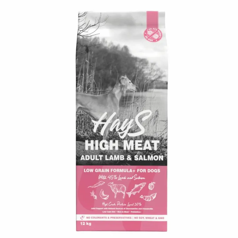 | Composition | Agneau déshydraté (27 %), riz (24 %), saumon déshydraté (16 %), graisse de volaille, patates douces (8 %), pulpe de pomme séchée (5 %), pulpe de betterave séchée, huile de saumon (2 %), levures, arômes naturels, carapaces de crustacés hydrolysées (source de glucosamine, 0,10 %), extrait de cartilages (source de sulfate de chondroïtine, 0,10 %), racine de chicorée (source d’inuline 0,017 %), mannane-oligosaccharides (0,013 %), spiruline (0,013 %), yucca schidigera (0,009 %), racine de pissenlit séchée (0,007 %), achillée millefeuille séchée (0,005 %).