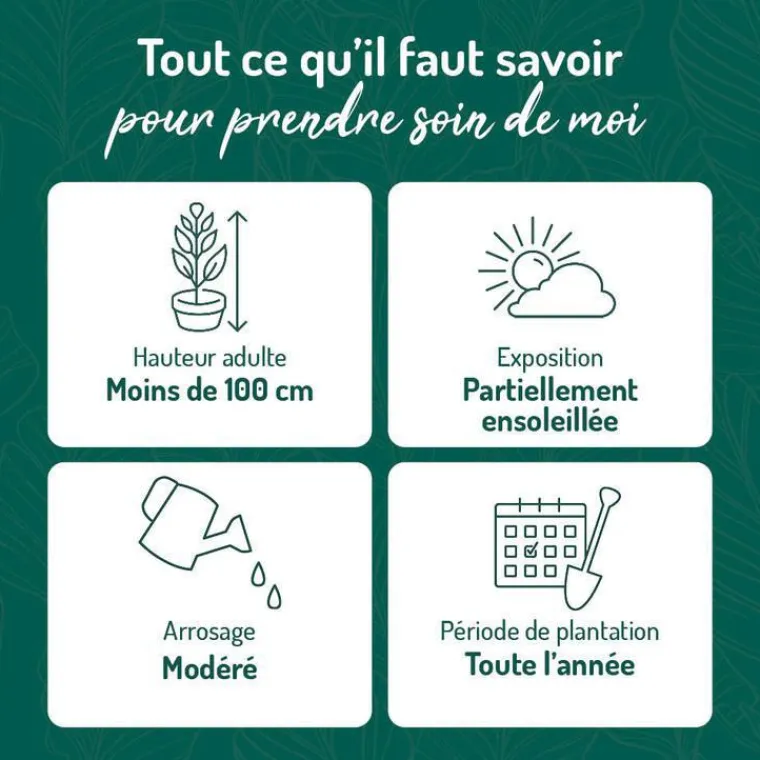 | Période de plantation | JANVIER JUIN AOÛT DÉCEMBRE SEPTEMBRE OCTOBRE JUILLET AVRIL MAI MARS NOVEMBRE FÉVRIER