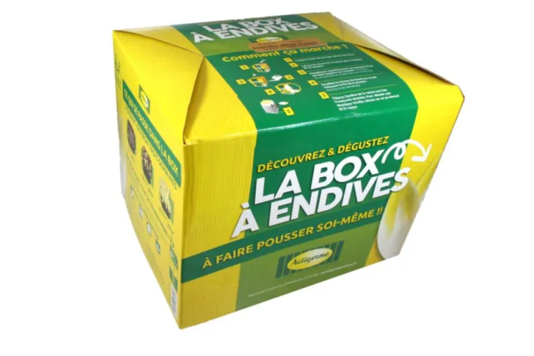 | Conseils d’entretien | Coupez le lien de la box, laisser le couvercle en place pour protéger de la lumière. Remplissez régulièrement la soucoupe d’eau qui doit toujours en contenir. Surveillez le niveau du liseré sur le pot indiquant la fin de la pousse. Séparez l’endive de la racine une fois la maturité atteinte.