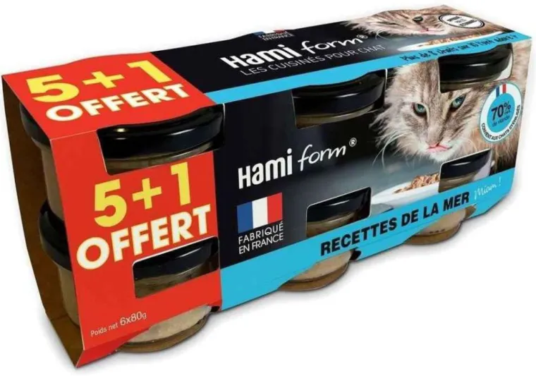 | Composition | PC06 : Sardines (58% min.), Crevettes (7% min.), Cabillaud (4,5% min.), Huile de saumon, Fibres végétales, Sel. PC25 : Sardines (60% min.), Homard (4,5% min.), Saumon fumé (4,5% min.), Huile de saumon, Fibres végétales, Sel. PC34 : Sardines (57% min.), Thon Saumon fumé (12% min.), Crevettes (4% min.), Huile de saumon, Fibres végétales, Sel.