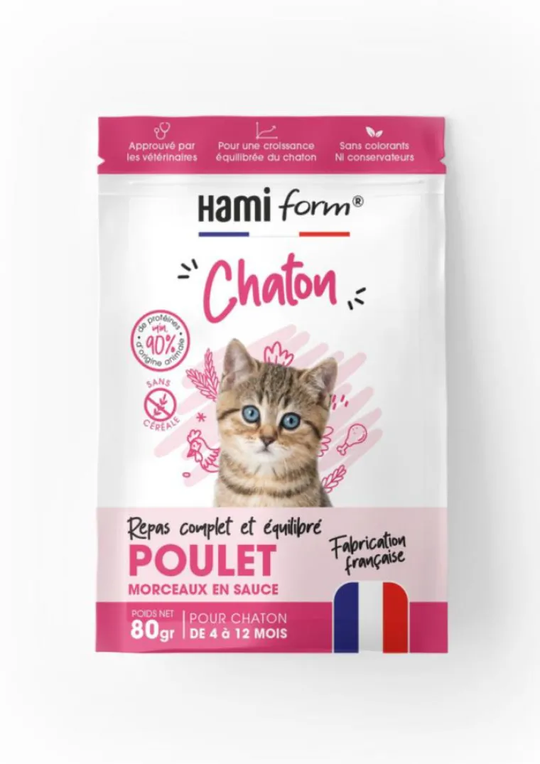 | Composition | Cuisses de poulet (50% min.), foie de poulet, carottes, levure de bière, huile de colza, fumet de poisson, fibres végétales, algues brunes (Ascophyllum nodosum).