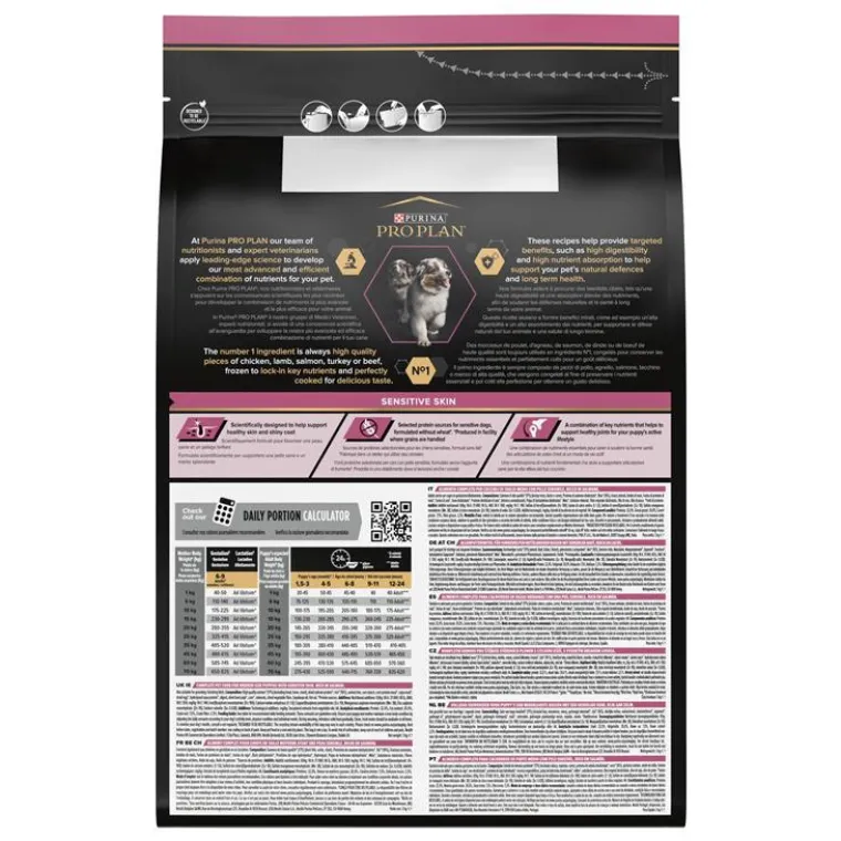 | Composition | COMPOSITION : Saumon* (17%), protéines de saumon déshydratées*, riz* (16%), graisse animale, amidon de maïs, gluten de maïs*, farine de soja*, protéines de soja déshydratées*, œuf déshydraté*, hydrolysat, pulpe de betterave déshydratée*, sels minéraux, maïs*, cellulose, huile de soja, huile de poisson.* Sources de protéines