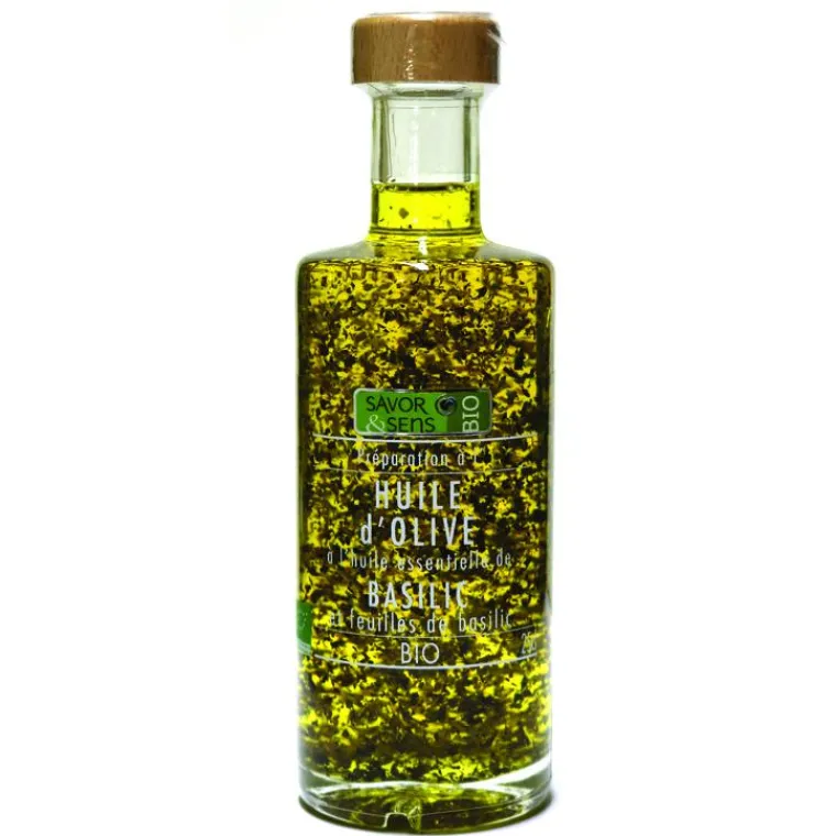 | Composition | Huile d’olive vierge extra* extraite à froid 98,52 %, arôme naturel basilic 0,99 %, basilic flocon* 0,49%. * Produit issu de l’agriculture biologique