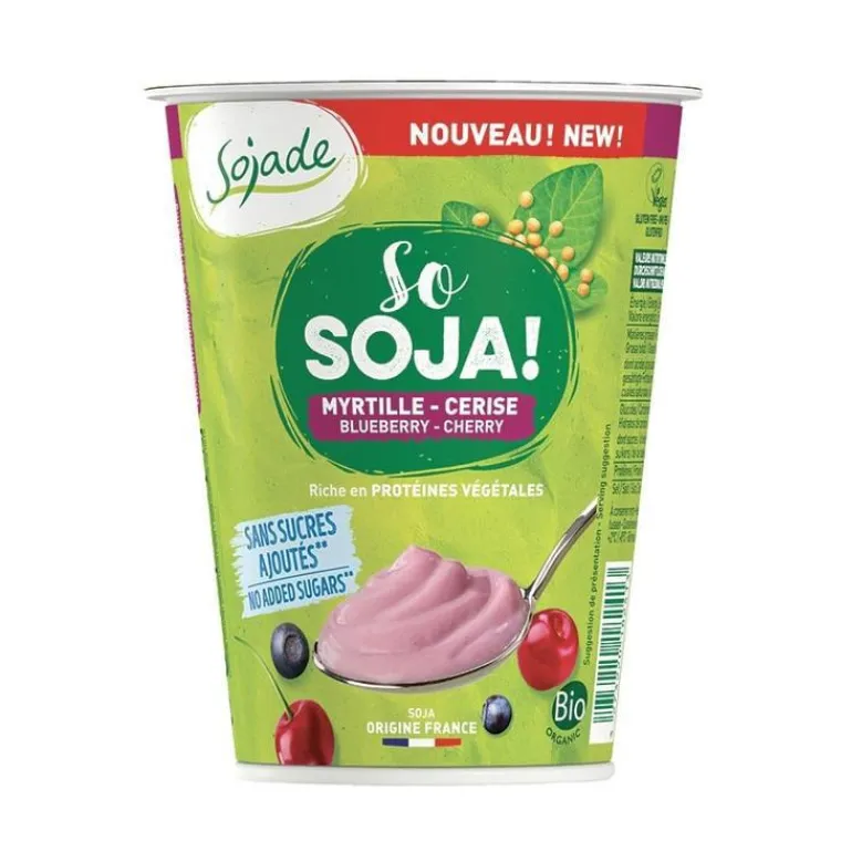 | Composition | jus de SOJA* 83 %, fruits* 9 % (myrtille* 7 %, cerise* 2 %), jus concentré de pomme*, amidon de tapioca*, arômes naturels*, ferments sélectionnés (dont Bifidus, Lactobacillus acidophilus). *ingrédient issu de l’agriculture biologique