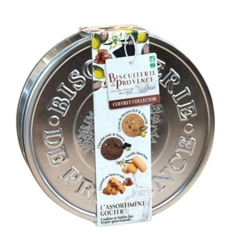 | Conseils d’entretien | Cette jolie Boîte métal Assortiment de cookies & sablés Bio est idéale à offrir ou à partager accompagnée d’une délicieuse boisson chaude ou d’une citronnade bien fraîche !