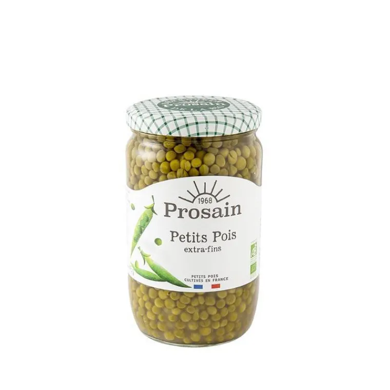 | Composition | Petits pois* extra fins, eau, sucre de canne* non raffiné, garniture* 3% (oignon*, carotte*), sel de mer, oignon* poudre, échalote* poudre.