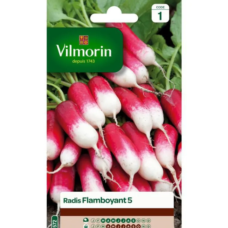| Conseils d’entretien | Au stade 3-4 feuilles, éclaircissez en arrachant les plus petits plants, pour ne laisser qu’un radis tous les 3 à 5 cm. Récoltez 3 à 7 semaines après le semis. Modéré